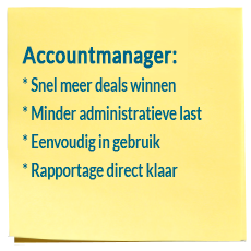 Tegelijkertijd is jouw managementrapportage altijd up-to-date en kun je eenvoudig betrouwbare verkoopprognoses maken. Kortom, je kunt je kostbare tijd vooral besteden aan jouw kerntaak: het coachen van elke verkoper naar topprestaties.