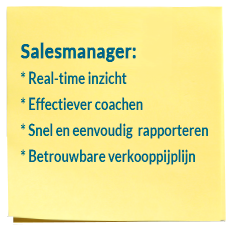 Als salesmanager krijg je waardevolle inzichten in de activiteiten van jouw team. Je hebt toegang tot alle relevante informatie om elke individuele verkoper real-time en effectief te coachen in plaats van achteraf te evalueren wat er goed en fout is gegaan.